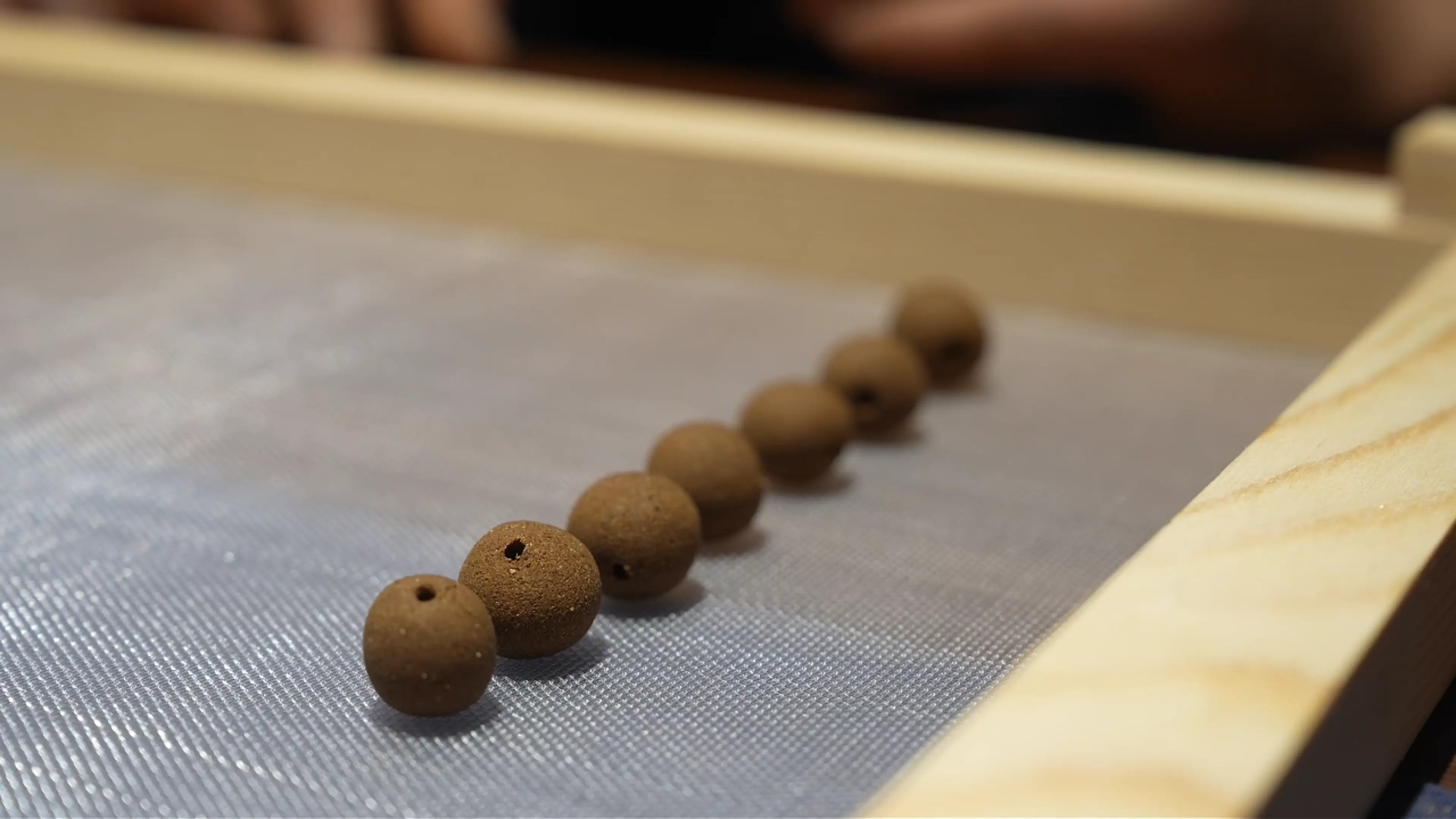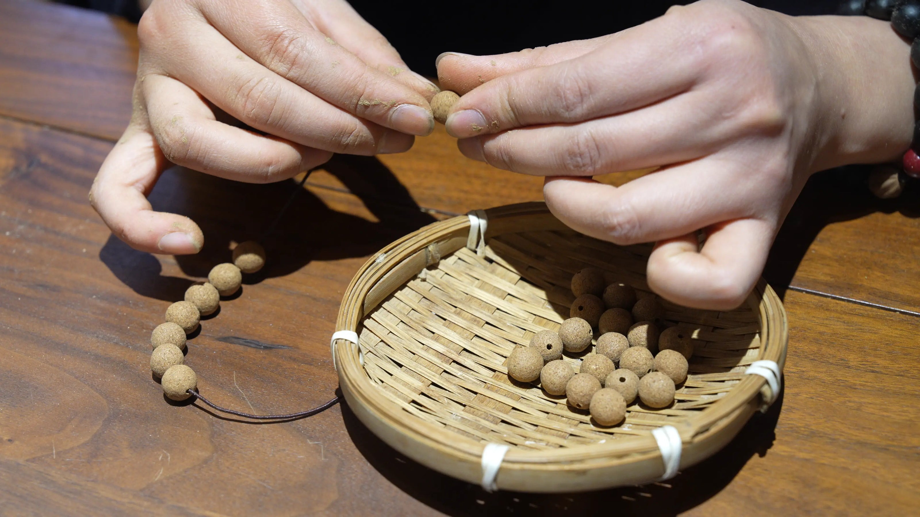 Each bead is rolled by hand, one by one.