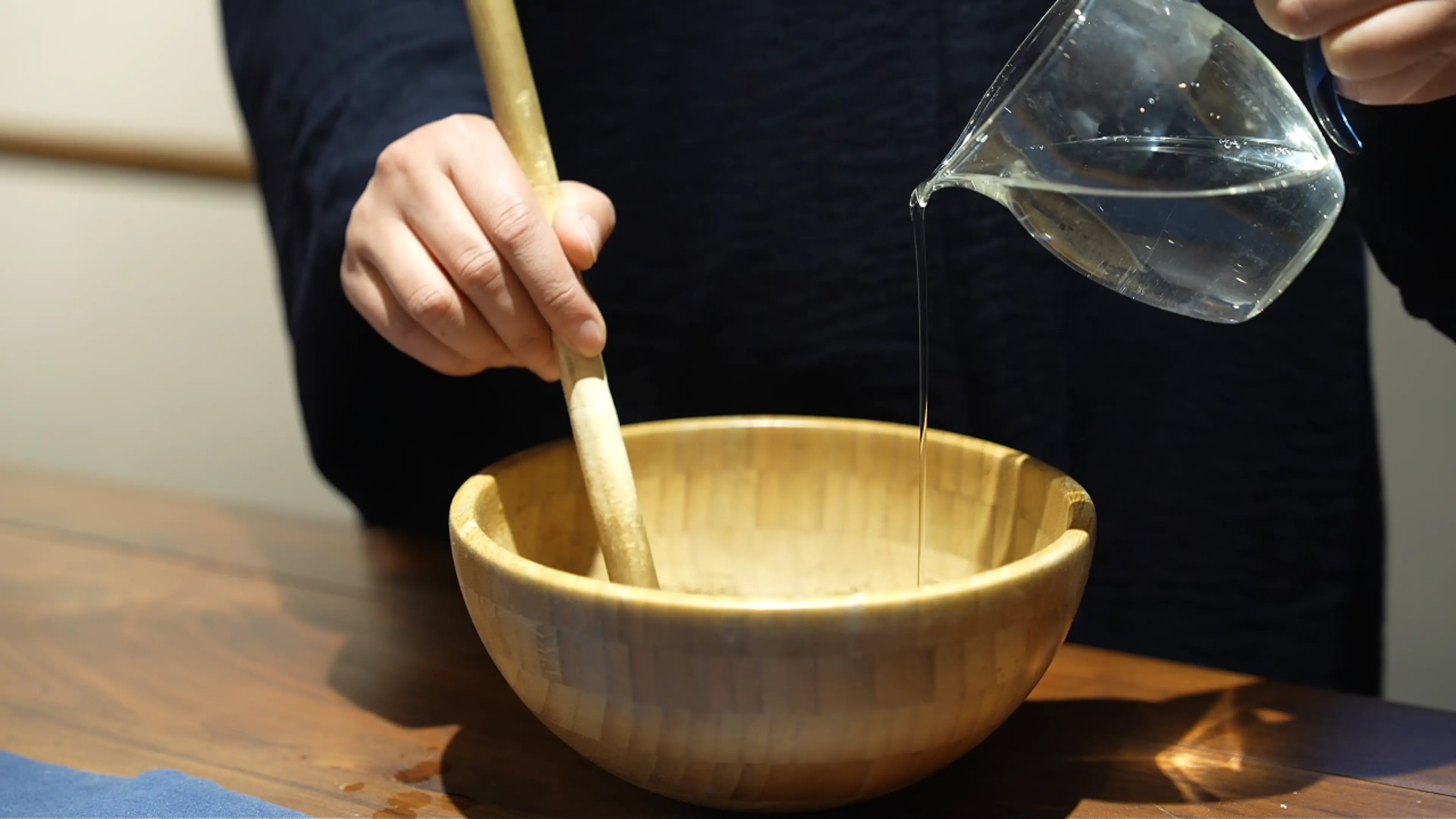 The powder is mixed with water into a workable herbal blend.