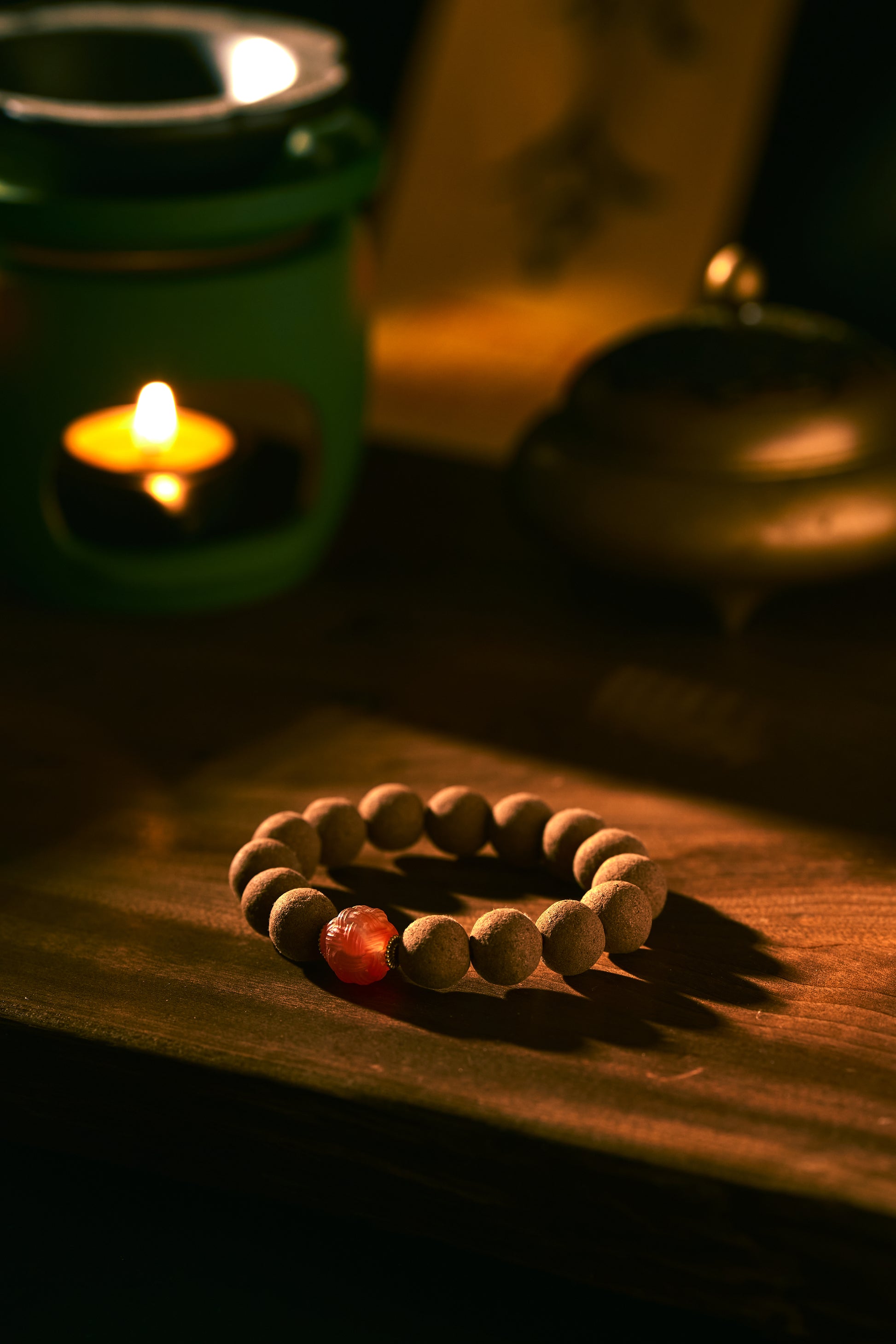 These ingredients are finely ground and blended with nanmu wood to form the herbal incense beads.